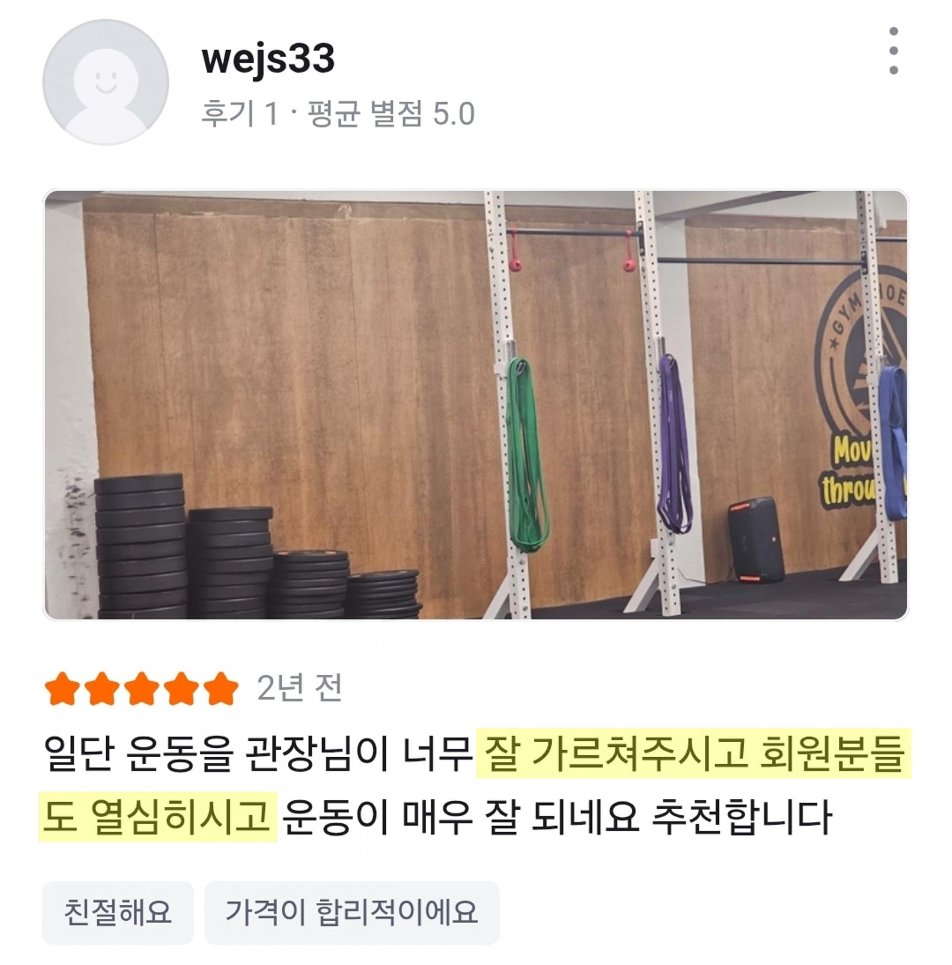 운동을 잘 가르쳐주시고 회원분들도 열심히 해요 🙌