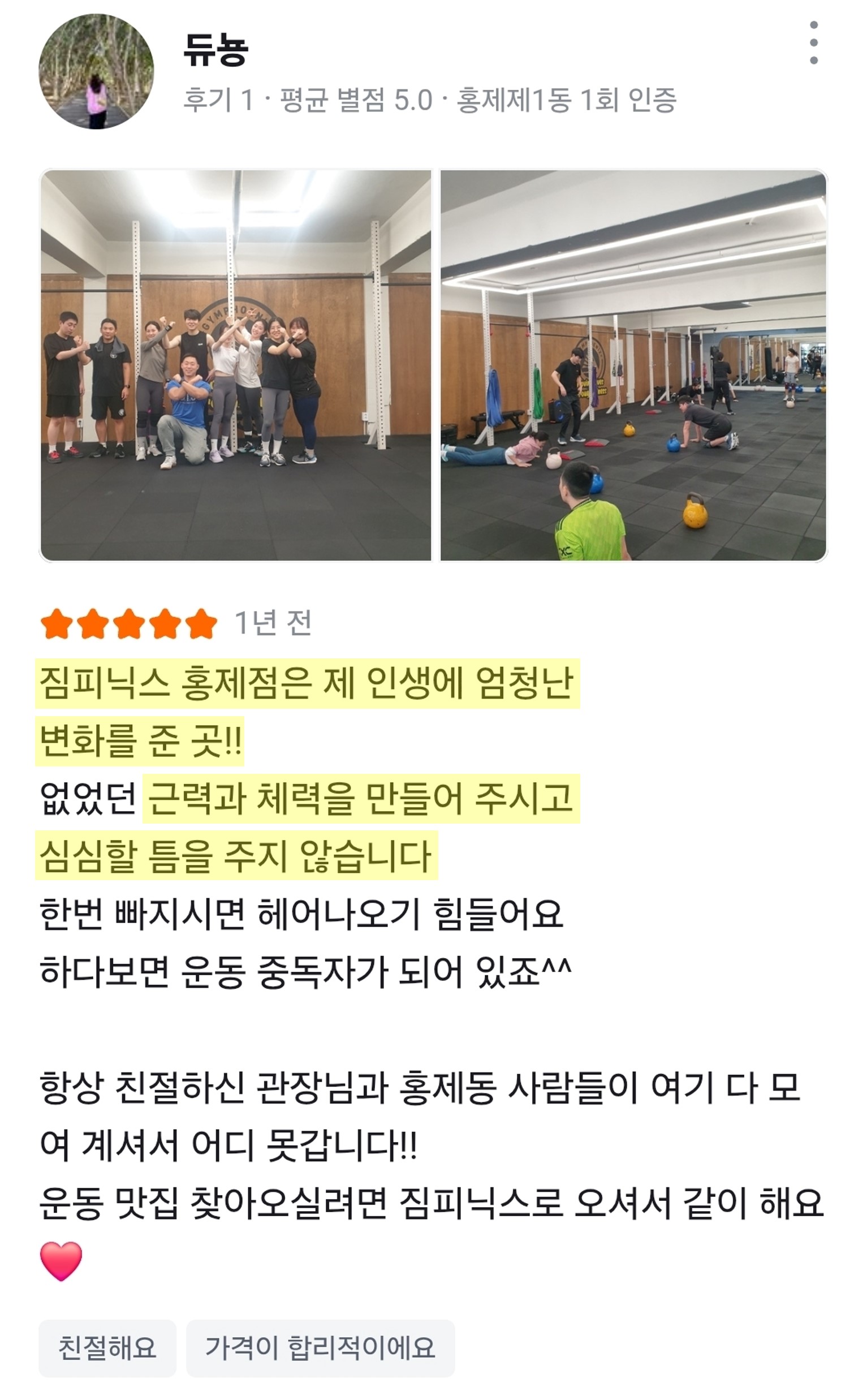 운동을 잘 가르쳐주시고 회원분들도 열심히 해요 🙌